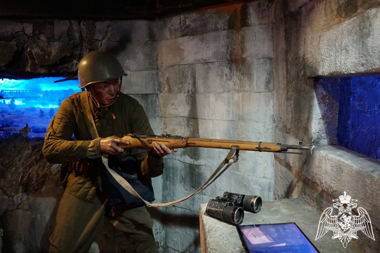 Экскурсионные группы начали посещать передвижной музей с самого утра. Среди посетителей — дети, включая кадет, находящихся под шефством кировских росгвардейцев, а также взрослые.