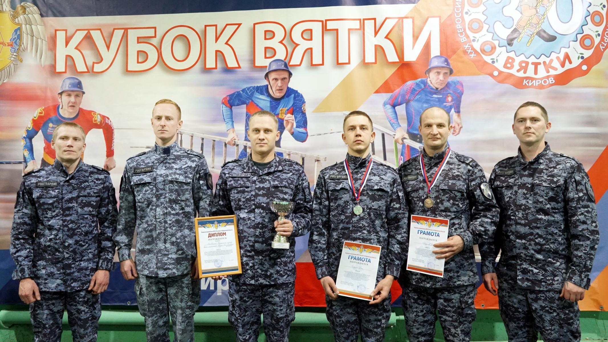 В Кирове завершились трёхдневные соревнования «Кубок Вятки» по пожарно-спасательному спорту, собравшие более ста участников из восьми регионов. Сотрудники Росгвардии получили серебряную и бронзовую медали в личном зачёте, а команда ведомства заняла второе место в общем командном зачёте.
