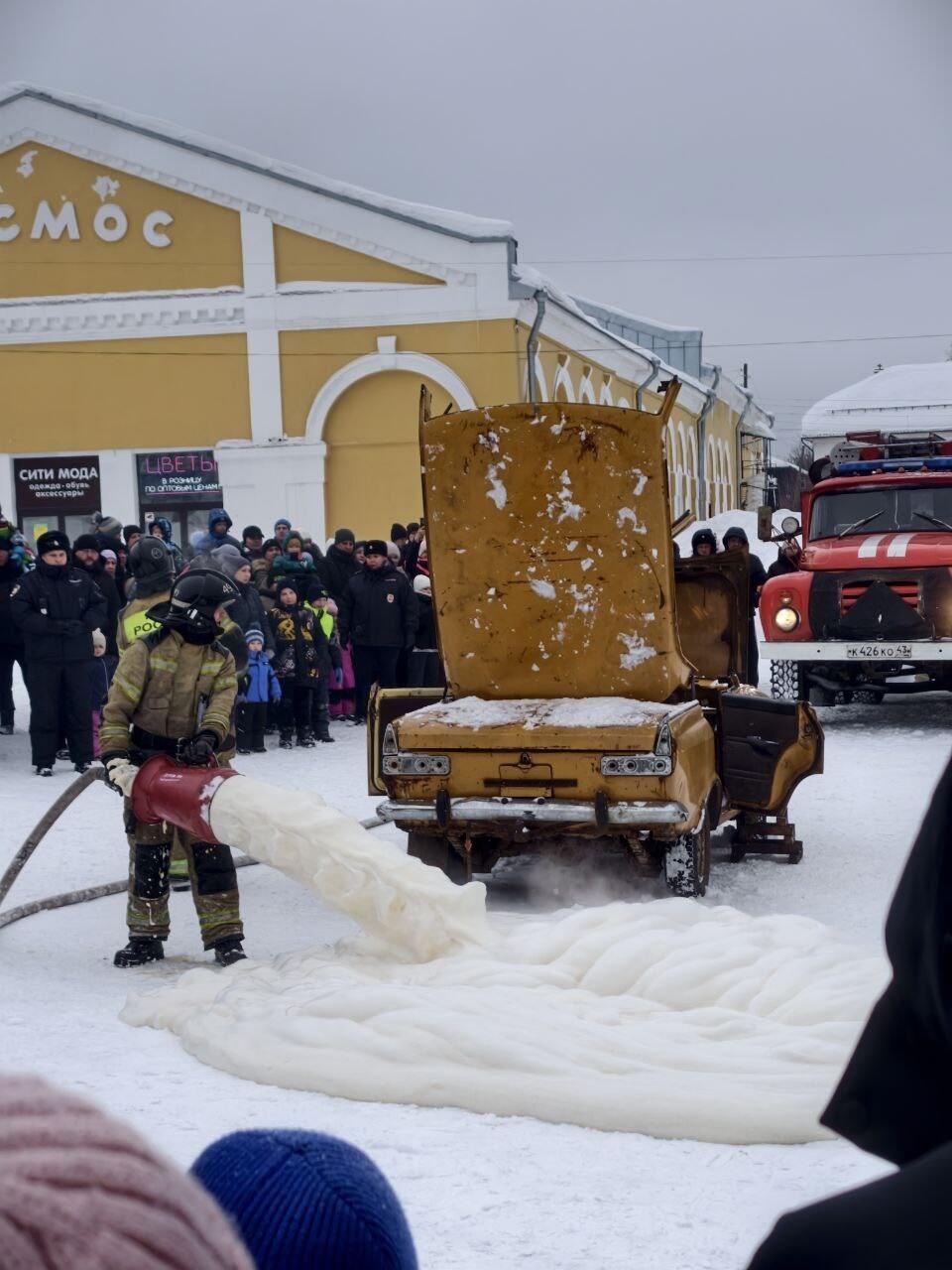 На Соборной площади Слободского прошли показательные выступления пожарных. Жители и гости города смогли увидеть технику, экипировку и даже примерить форму огнеборцев.